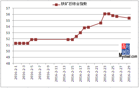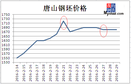 图一:2016年2.14-2.29唐山钢坯价格走势图