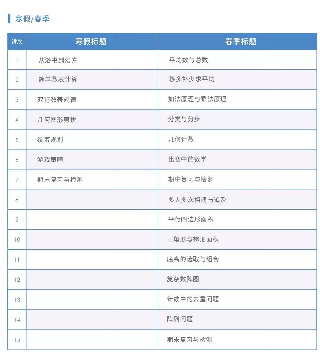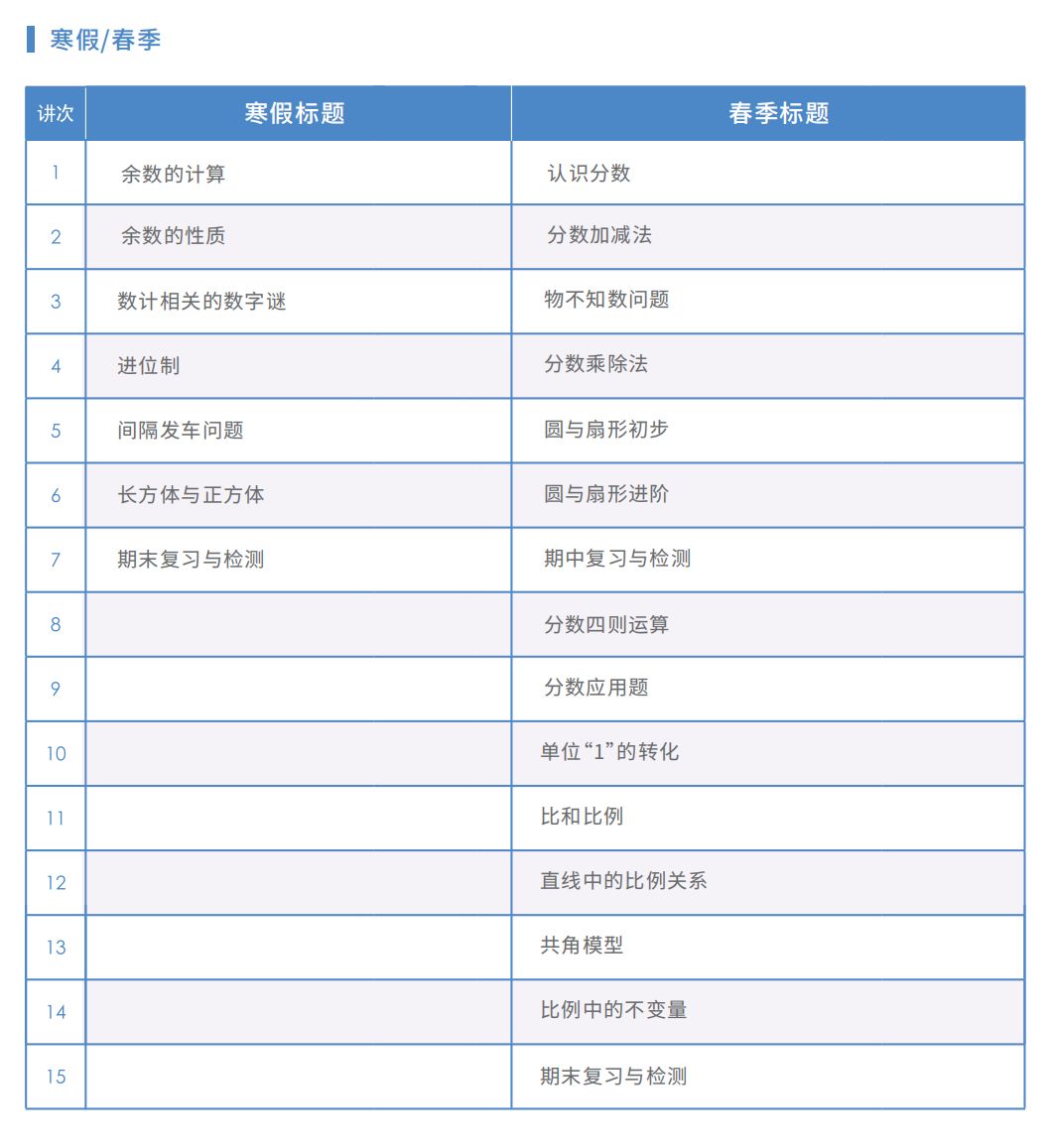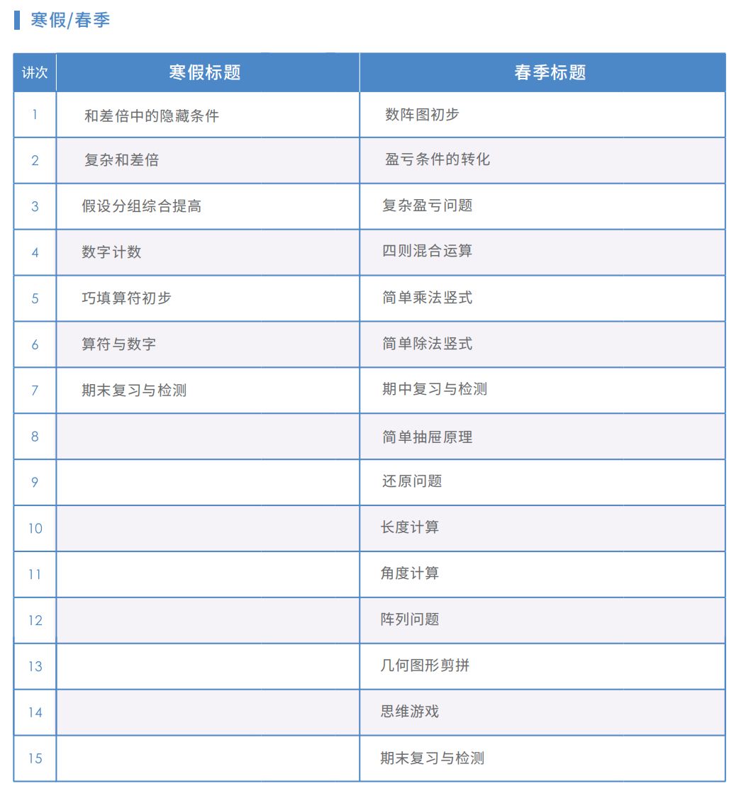 四年级寒春学习内容