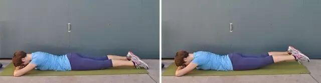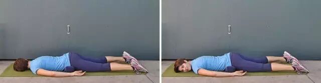 开始时,俯卧,双腿并拢,手放在前额上。使肚脐向脊柱靠近以使腹部得到锻炼,挤压背部。呼气,双腿抬起,离地1-2英尺,双腿伸直。呼气,腿慢慢放下。重复5-10次。