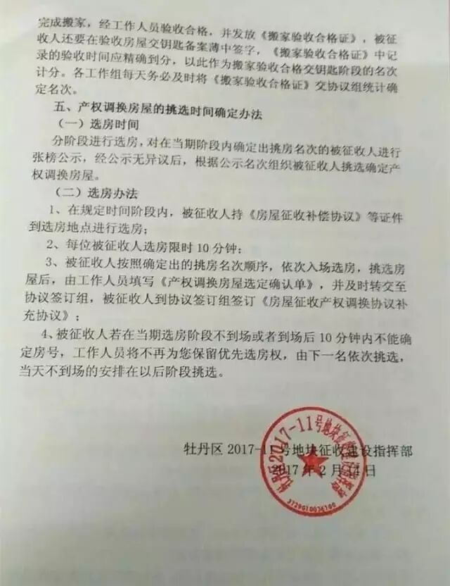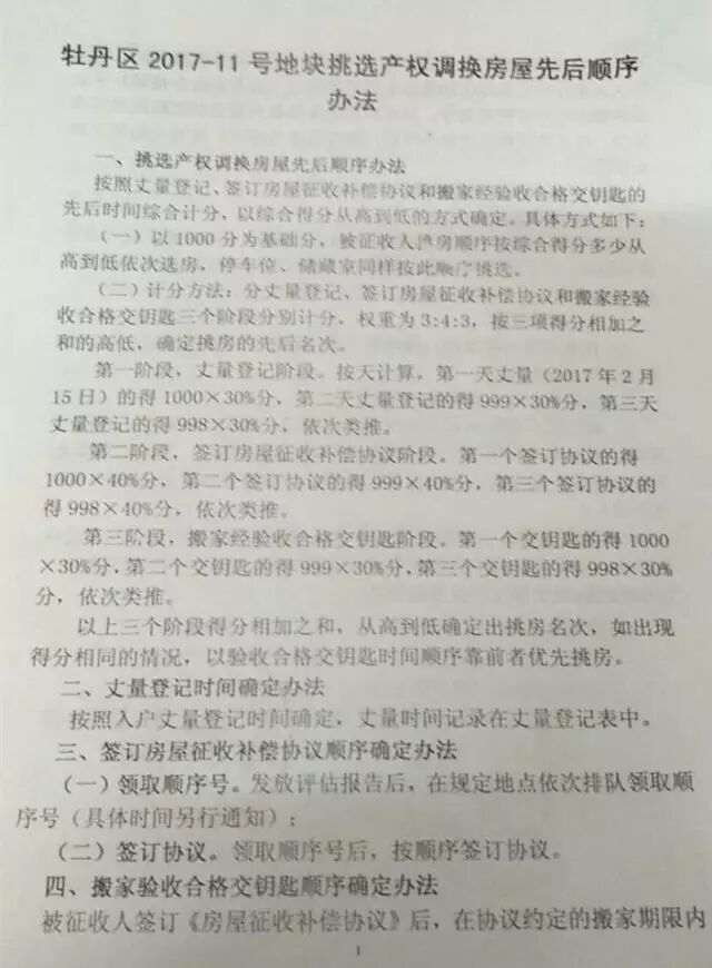 《牡丹区2017—11号地块挑选产权调换房屋先后顺序办法》