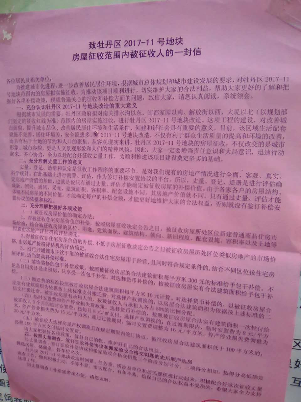 随后,在牡丹区2017-11号地块征收建设指挥部,相关负责人向牡丹晚报记者介绍,该项目像区内其他多数项目一样,目前只是进行丈量调查摸底,具体的签订协议、拆迁时间以及建设计划等还是未知数。