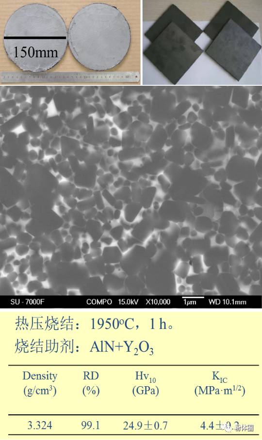 使用中国科学院理化技术研究所制备的SiC粉体材料,添加氮化铝和氧化钇等烧结助剂,通过热压烧结工艺,可以制备出性能特点如下的防弹陶瓷。