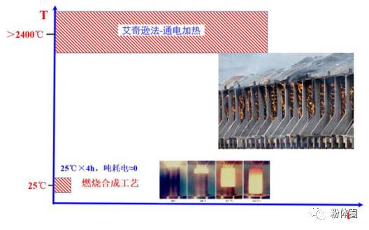 对比,相对于传统的艾奇逊法冶炼碳化硅,冶炼1吨黑碳化硅需要 6000 度到 7000 度电,冶炼 1 吨绿碳化硅需要 8000 度到 9000 度电。而燃烧合成纳米立方碳化硅(β-SiC)粉体对电能的消耗几乎是零。