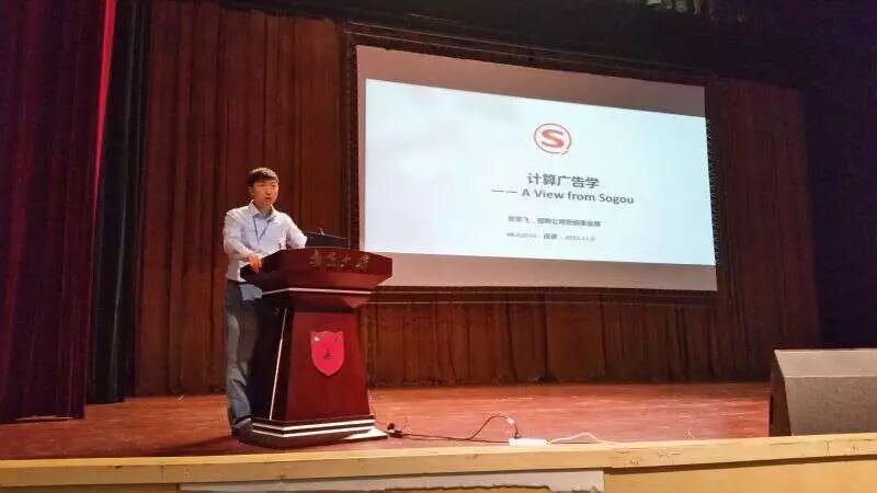 第十三届中国机器学习及其应用研讨会在南京大学举行,为期3天的研讨会汇集了十余位海内外从事机器学习及相关领域研究顶尖专家学者,进行了专业的学术交流与分享。搜狗历来鼓励科技创新,此次研讨会搜狗更是作为白金赞助商,给予大力支持。8日,搜狗精准广告研发部总监贾荣飞作为嘉宾出席了此次研讨会,以“搜狗视角的计算广告学”为主题,做出极具前瞻性和实用性的机器学习应用技术分享,赢得了在场专家们的一致好评。