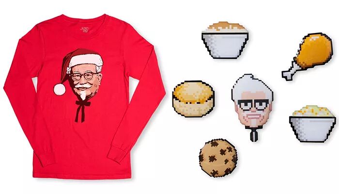 然后它还推出了一系列圣诞单品,包括炸鸡系列的衣服、配饰和贴纸、别针等等...