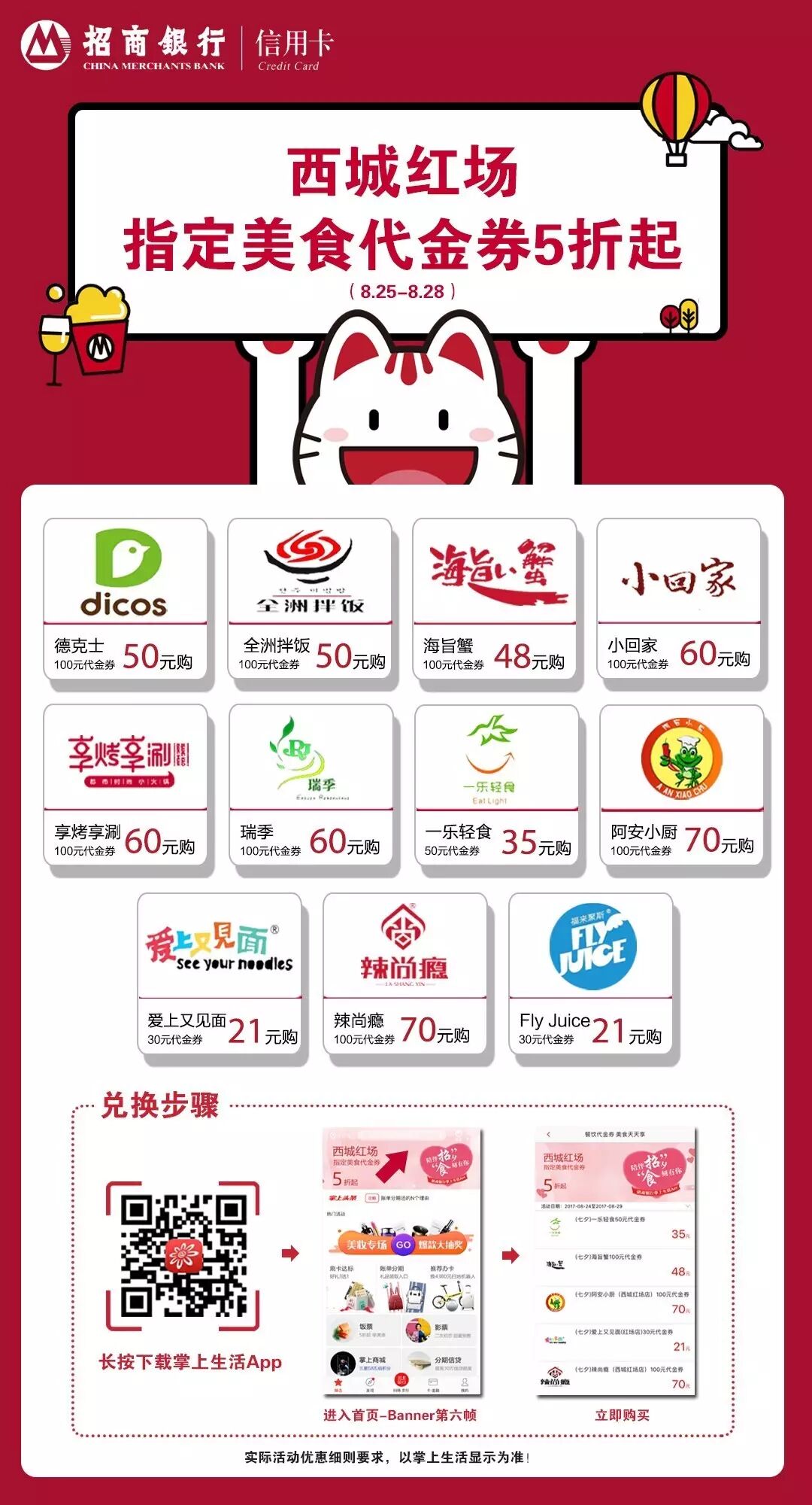 实际商户优惠信息及使用细则要求,以掌上生活露出为准!