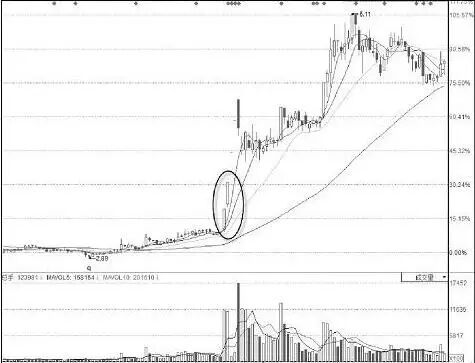 庄家在底部收集筹码花费了较多长时间,在其锁定大部分筹码后,很少的资金就能轻松地将股价推至涨停。此时庄家具备了控盘的能力,可以随心所欲地控制盘面。