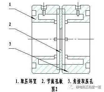 孔板流量计结构形式一般有三种:法兰取压、角接取压、D-D/2取压方式,分别见图1、图2、图3。