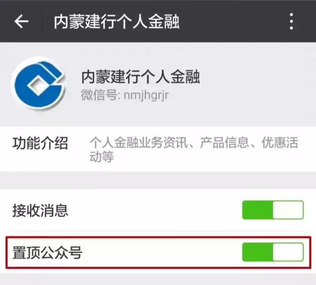快来置顶让您打开“订阅号”第一时间看到“内蒙建行个人金融”!