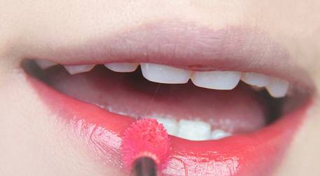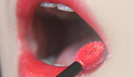第四步:这个步骤对薄唇很重要,厚唇请忽略。这个时候唇刷头部已经没什么产品了,用尖尖的地方描一点出来,看起来嘴唇会厚一些。