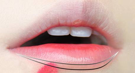 第一步:下唇完成了,现在开始上唇部分,再取一次膏体,同样从内部描,用顶尖控制范围大小。