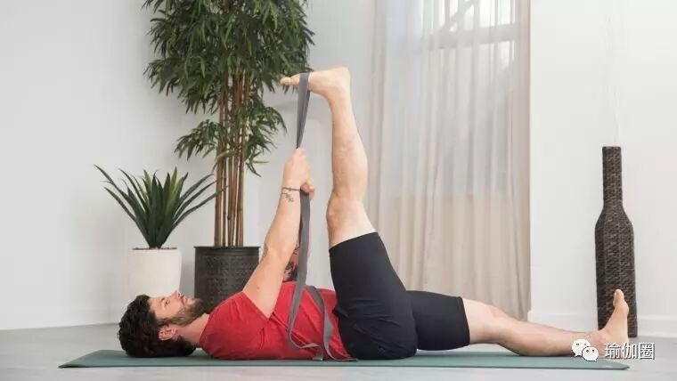 • 将瑜伽带套于靠近脚趾处的脚掌,双手抓带子低端。