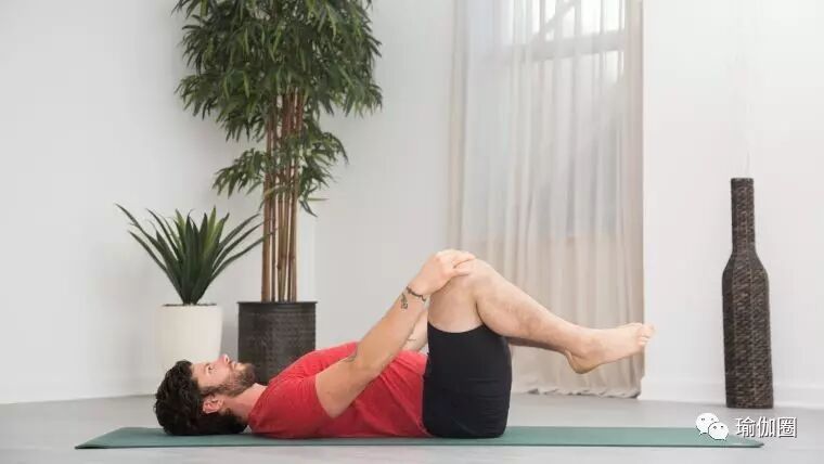 • 调整腰部力量,让腰平稳贴地,中间不留空隙。吸气,分开双膝同胯宽,双手拉双腿靠近胸腹,延展尾骨向前向下,注意感受腰部轻轻抬离地面,并有些许疼痛。