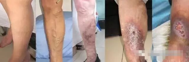3、淤血性溃疡:常发生于小腿下1/3的内、外侧,稍微外伤,即可发生小腿慢性溃疡(老烂腿),很难愈合。