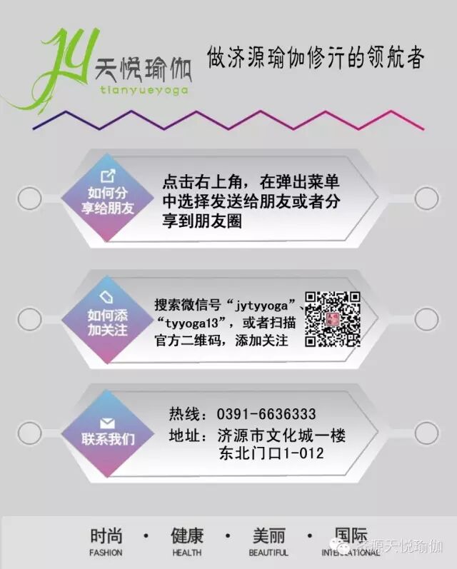 关注济源天悦瑜伽,分享美丽健康人生!