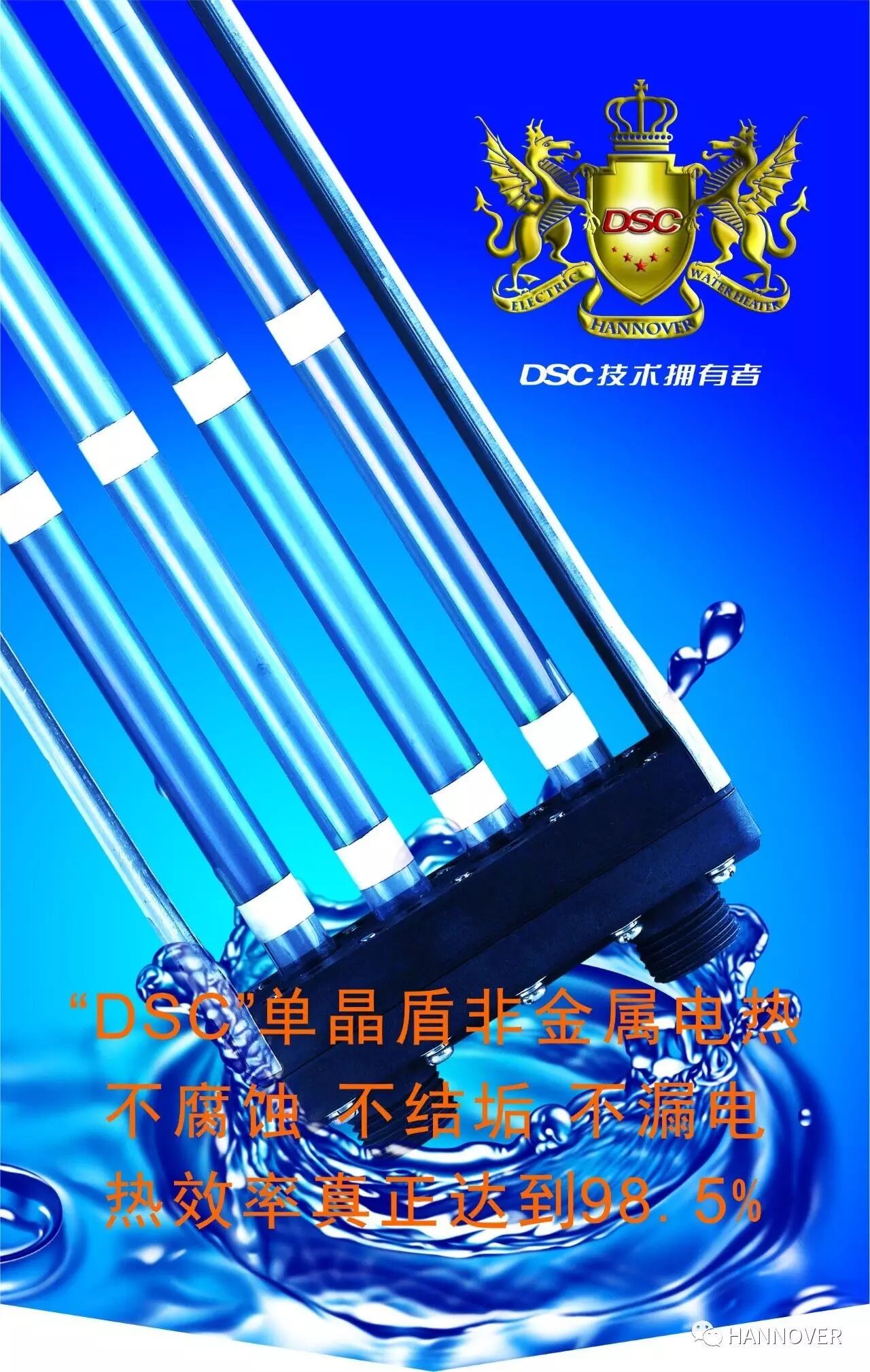 3、发热体:采用第九代“DSC单晶盾”非金属核心电热技术,真正的永不结水垢。