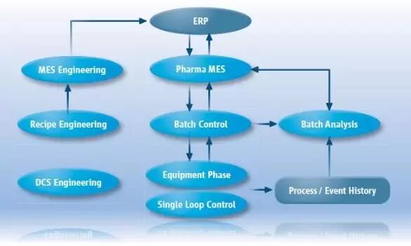 在新建成的活性成分工厂中,运行过程和生产决策是用市场上的MES软件来支持。早期阶段,MES模块通常作为独立的应用运行,并且只与邻近的自动化层进行通信,交换数据,使用特定接口完成控制系统功能。这通常导致了方法的多样化,实施的互操作性不足,操作员的环境也不一致。
