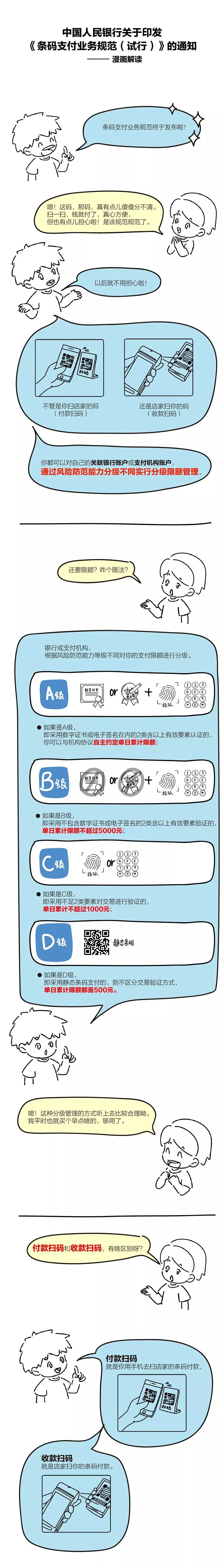 日前,;条码支付业务规范(试行)>的通知》(下简称《通知》),配套印发了《条码支付安全技术规范(试行)》和《条码支付受理终端技术规范(试行)》,自2018年4月1日起实施。