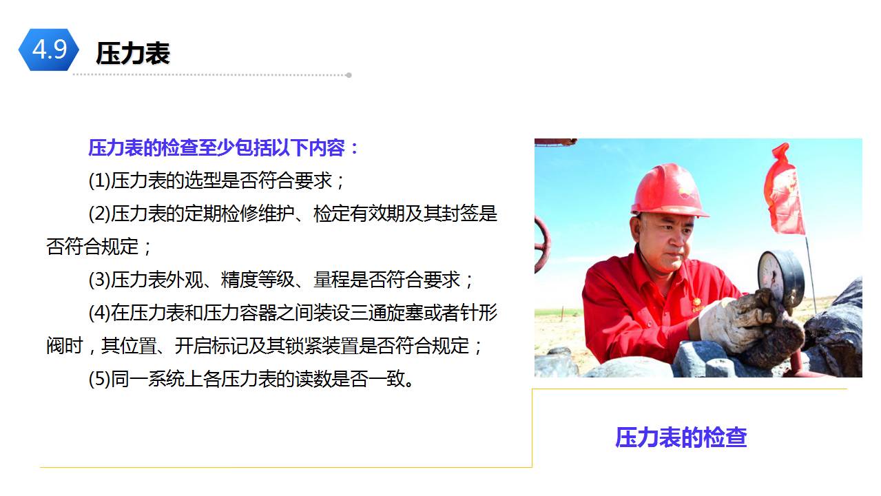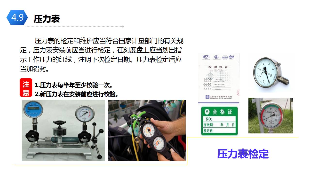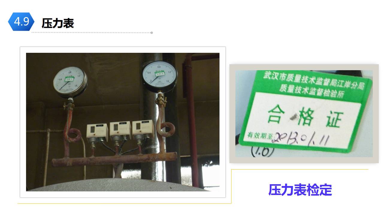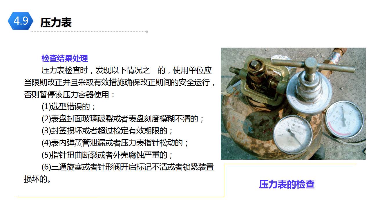(2)压力表的定期检修维护、检定有效期及其封签是否符合规定;