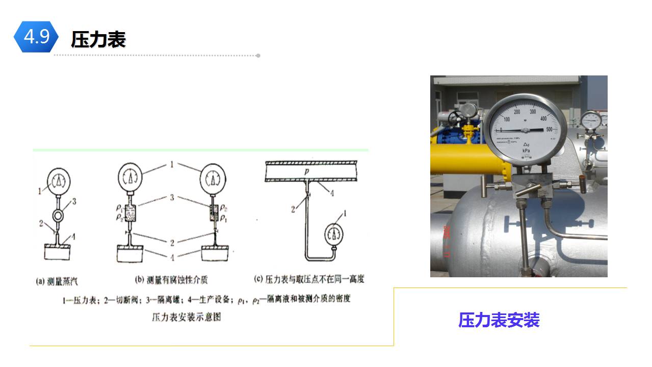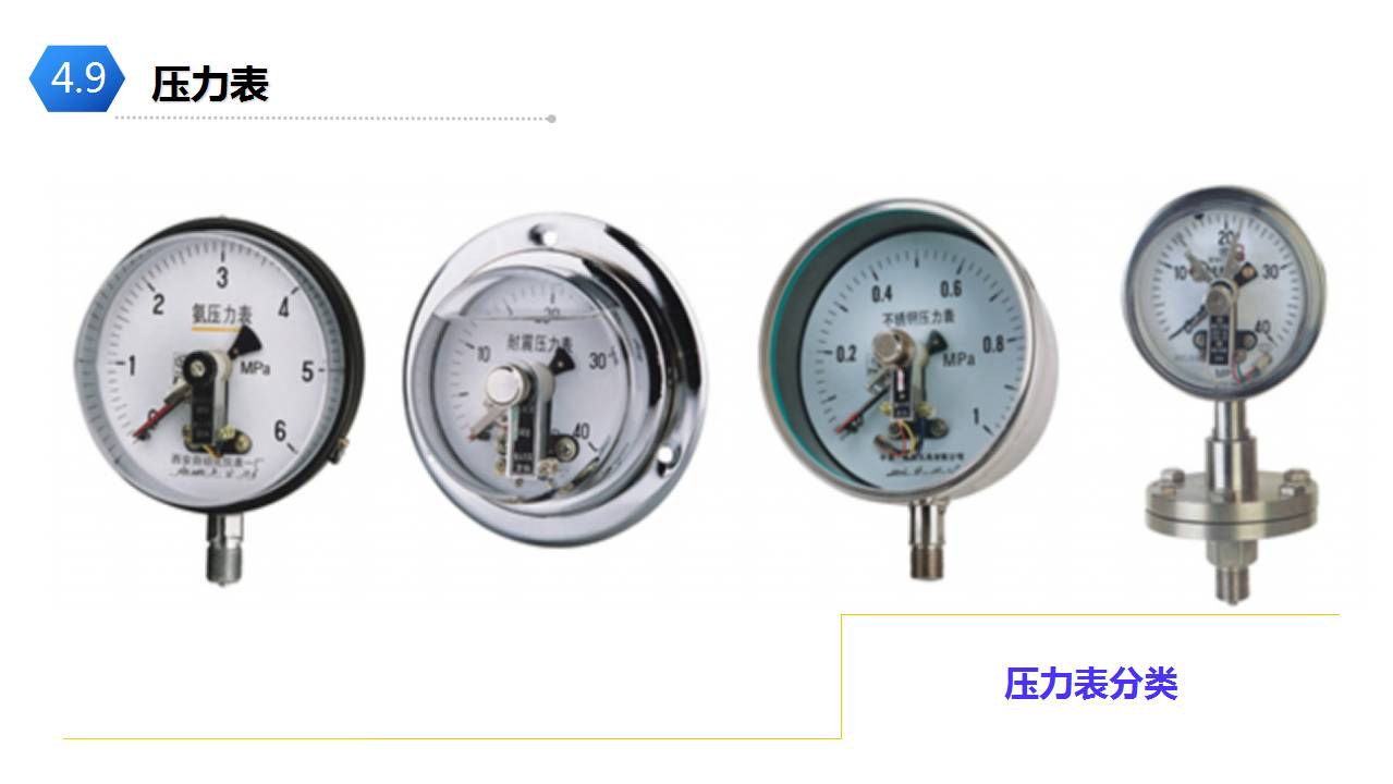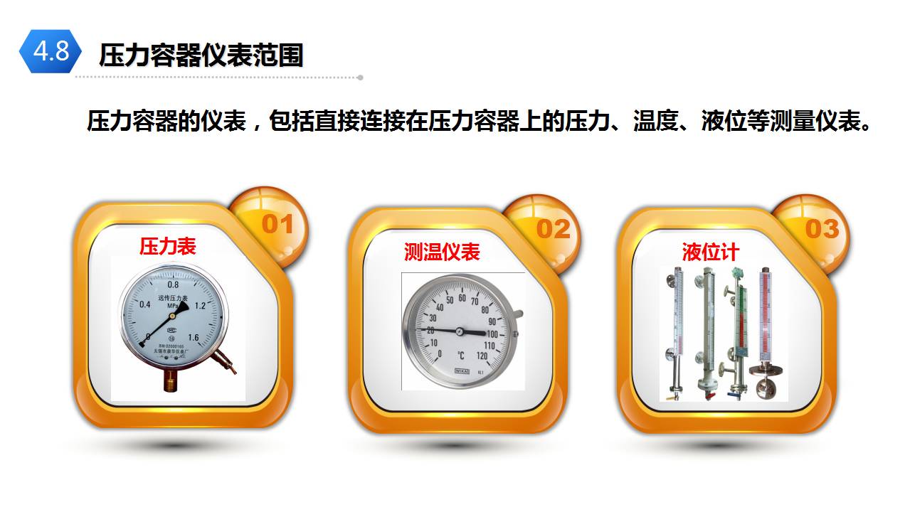 压力容器的仪表,包括直接连接在压力容器上的压力、温度、液位等测量仪表。而压力表是用于测量容器内工作介质压力的一种仪表。