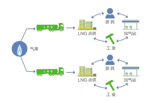 一般来说,LNG点供是指通过车船等方式,而不是天然气管网,将液化天然气LNG送达目标市场,为各类客户提供天然气。LNG点供的优势是:廉价、便捷、面广、完全市场化。