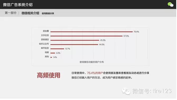 答案是微信的数据实在太好了,数据显示目前微信已经有11.2亿注册用户,月活跃用户4.4亿,在70多个国家的社交类应用排名中位列第一。朋友圈中每天的 信息量高达30亿,76.4%的用户会在朋友圈查看朋友动态或分享消息,这么一座大金矿,哪怕是说过“微信不是营销工具”的张小龙也背不住这么大的压力, 要开始采矿了。