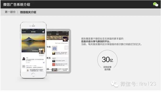 综上所述:(1)金矿:微信目前有4亿多活跃用户, 每天朋友圈信息量30亿,含金量巨大;(2)Feed:朋友圈广告形式为Feed广告,与其他朋友消息极其类似;(3)智能:广告是基于好友的行为智能推送的,反感度不会太强烈;(4)克制:如果无互动,广告6小时后自动失效,48小时内只会出现一次广告;(5)千万:全国投放一次的价格在千万级别,今后投放最少也要500万以上。