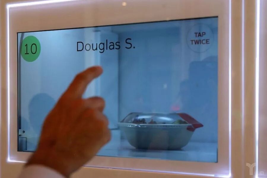 比较有科技感的透明屏取代了传统的收银、取餐柜台,为了让“无人店”的感觉更逼真,店员在后方放置餐点时,屏幕会变成不透视的黑色,然后再恢复到可以输入密码的键盘模式。