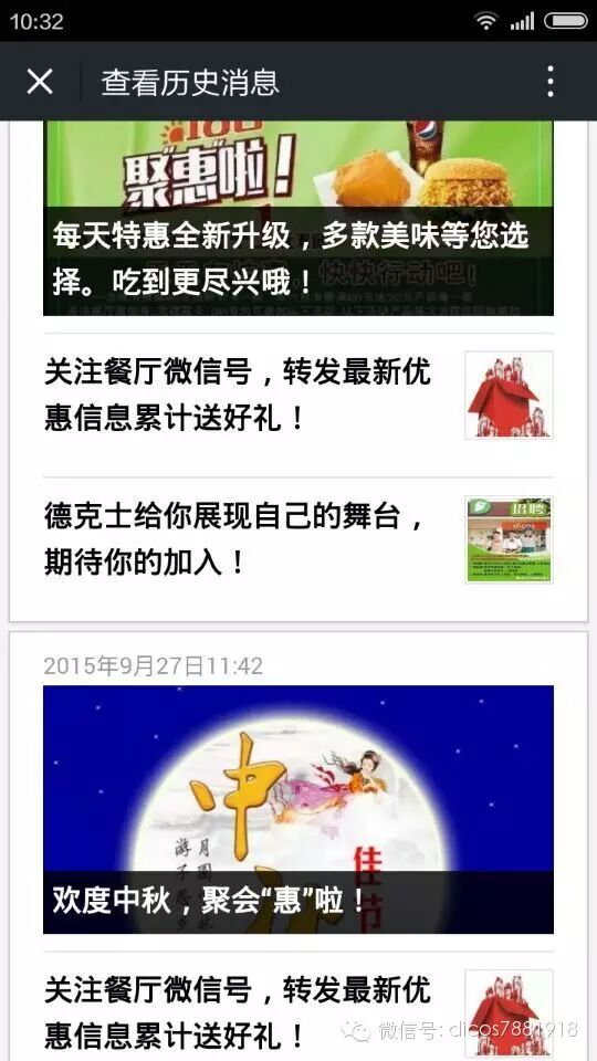 最后出现在你手机界面的就是德克士店内最新的优惠信息喽,在这里面选一条信息转发就可以成共累计啦。开始吧!德克士的美味等你免费领取哦!