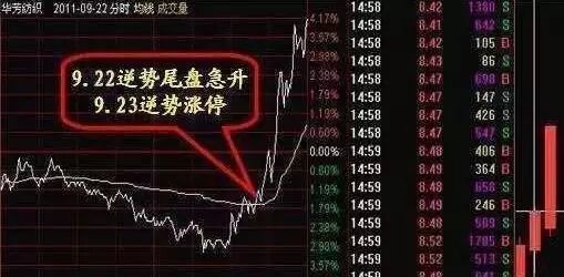 如上图所示,这种形态还是比较容易识别的,在尾盘呈现放量时迅速拉升,这时候进场的资金越多,表明了后市的涨幅就会更大。