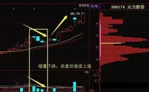 2、洗盘不是大量筹码卖出,所以不会有很大的成交量,往往是缩量下跌。