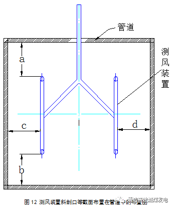 b.方管:测风装置斜剖口等截面布置在管道中,如下图所示: