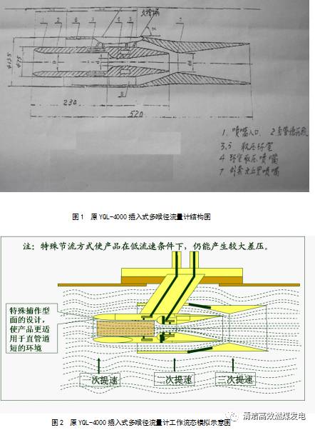 2.YQL-4000插入式(或整体式)多喉径流量计,采用机翼式测量装置,体积较大占用大量的风道空间,大大减少风道的流通面积,造成流体的压损较大,加大了送风机的出力,从而造成送风机输出电流增大,增加了厂用电,节能性差。