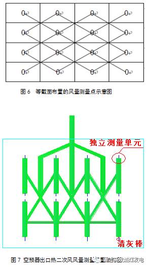 由于电站锅炉一、二风总管直管段安装条件在许多场合无法满足,而且风道截面大,流速在截面上容易分布不均匀,为了确保测量精度,可以将多个风量测量探头进行等截面多点布置,然后将各测量装置的正压与正压、负压与负压相互连接,最终引出一组信号到变送器,这样的组合风速测量装置对风道的直管段没有太多要求。