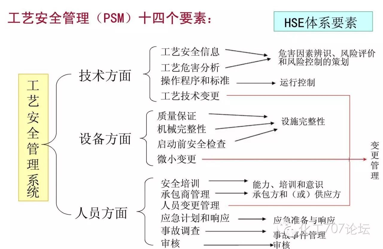 仔细考察其内容可以帮助我们进一步理解工艺安全管理(PSM)的概念。PSM包含14个要素: