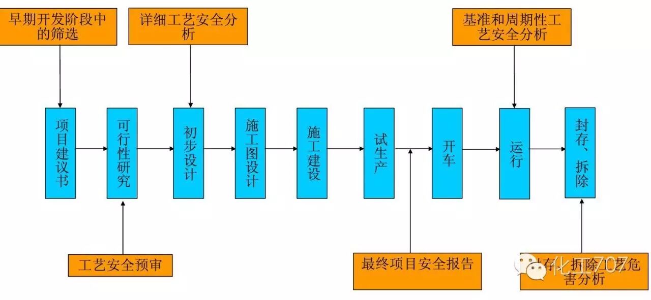 根据工厂不同生命周期或阶段的特点,采取不同的方式辨别存在的危害、评估危害可能导致的事故频率及后果,以此为基础,设法消除危害以避免事故,或减轻危害可能导致的后果。