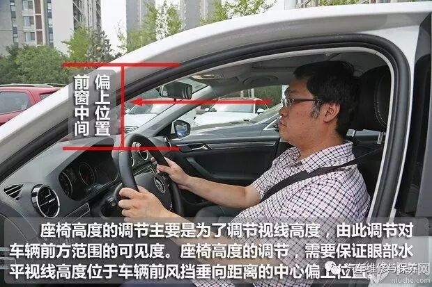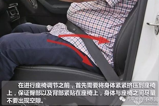 进入车内首先不要急于调节座椅的前后距离,应先调节座椅高度(如可调)以及靠背角度来为后面的调整打好基础。