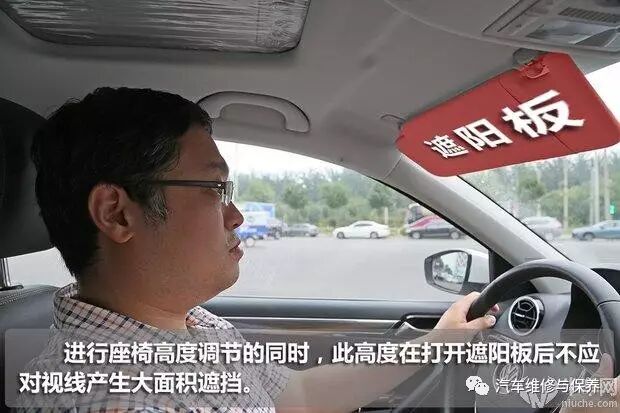 1. 座椅高度的调节主要是为了调节视线高度,由此调节对车辆前方范围的可见度。座椅高度的调节,需要保证眼部高度位于车辆前风挡垂向距离的中心偏上位置(此时大多车型头顶距车顶之间有五指宽),此时的视野最佳,且能够保证对车辆前方路况的良好观察。此时,如果打开遮阳板不应该对视线产生大面积遮挡。