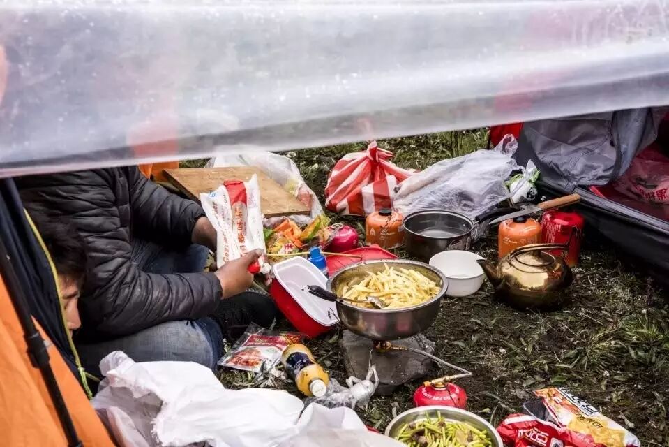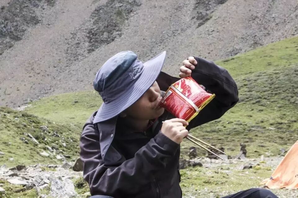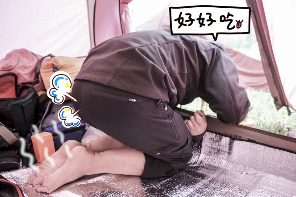 回到营地,饿了,懒的洗碗,采用了最原始最科学最学生时代的吃法,直接用袋子泡。。