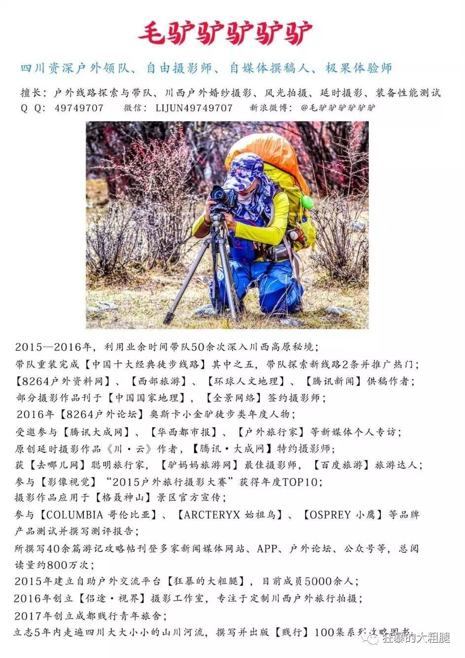 毛驴会不定期组织川西户外游和川西婚纱旅拍,如果你酷爱户外旅行,现在就关注我们的微信公众号,获取一手新鲜资讯。