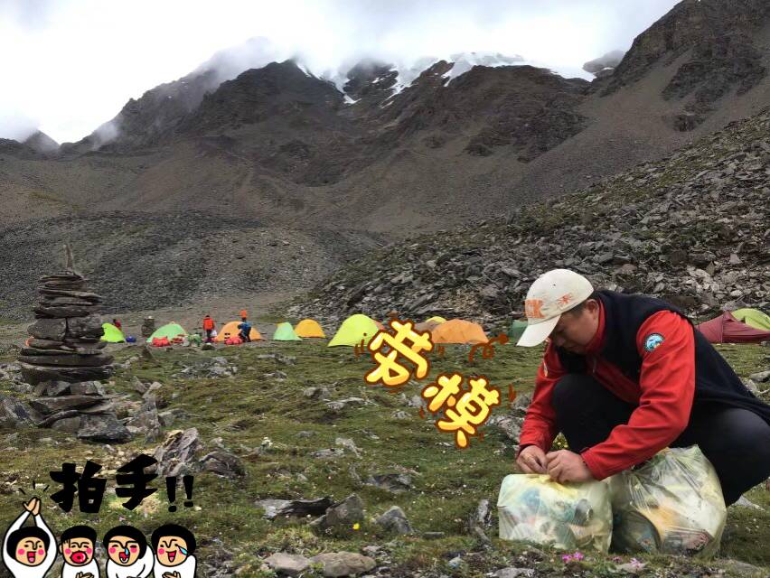 我们的顶级志愿者楚河,从到营地就开始满营地的捡垃圾,足足检了2满口袋前人们留下的垃圾,后面开始下雨也一直在外面检,满营地的转悠了2个多小时,我也是给跪了,试问我自己.........不用想,我做不到。