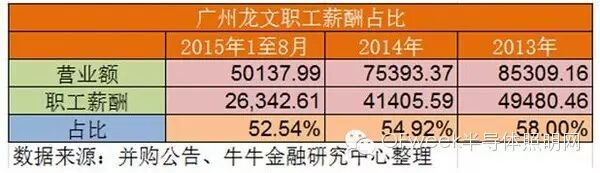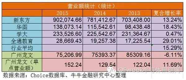 公告中披露,广州龙文的2013年至2015年的营业额分别为8.5亿元、7.5亿元和7.5亿元,复合增长率为-6.11%(注2)。对此,标的公司解析为在2015年内对进行了一场精简,关闭了部分效益较为低的网点,故此其网点的平均营业额是提升的。然而经过统计,广州龙文平均网店营业额增长率为11.69%,低于同业上市公司的平均营业额增长率。