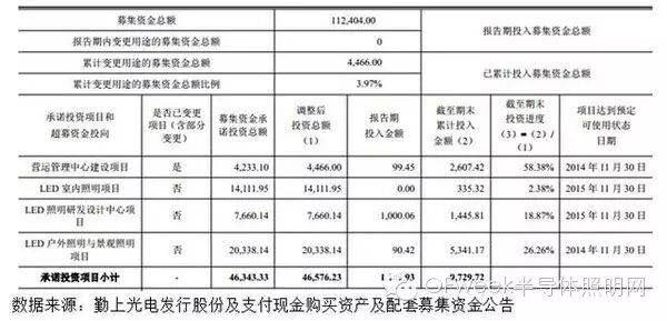 在承诺建设的项目中,LED户外照明与景观照明项目只用了预算的26.26%就完成,公司解析为技术进步带来生产设备的减少和改变建设地点降低的成本;研发中心的完成期限则被再次推迟到2016年底;LED室内照明项目更是直接被取消。以上项目中未投入的资金均宣布将会用于对外投资。