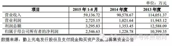 根据本次交易的收购方勤上光电发布的财务数据,最近三年公司的盈利能力有明显的萎缩,尤其是2014年利润同比下降了接近90%: