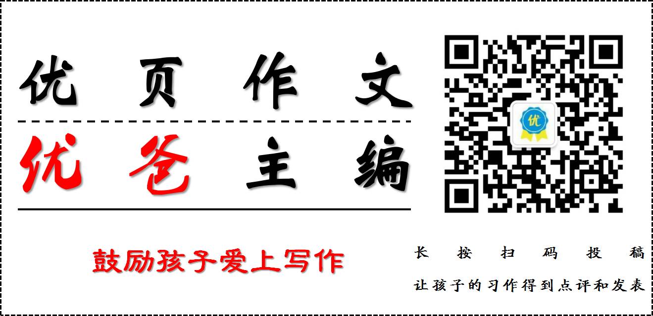 为了鼓励更多孩子爱上写作,写好作,由优爸主编的“优页作文选”平台举办此次作文大赛,参加大赛你将获得免费点评、指导、发表和奖状,还有机会获得赞赏金和丰富的奖品!