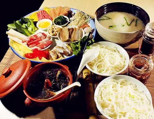 过桥米线是云南的一张名片,是云南风味美食的第一张名片。它集中地体现了滇菜丰盛的原料,精湛的技术和特殊的吃法,在国内外享有盛名。过桥米线由高汤、荤素片和米线三部分组成。第一次吃过桥米线一定要先学点常识,正确的吃法不但关系品尝到美味,更关系到食客的“人身安全”。