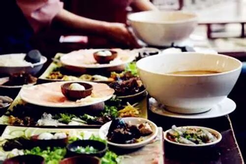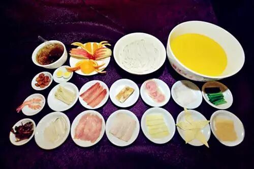 不过,今天我们所看到的过桥米线可要比那时的复杂、讲究许多。按照配料的不同,过桥米线也会分为不同的档次,价格自然也就从十几元至千元不等。至于配料嘛,都是由大大小小、若干个荤素各异的菜碟精心配制而成的。考察吃过桥米线好坏有四个重点、一个关键。