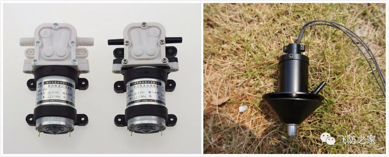 众多精准方案                                                 目前植保机的喷洒系统大致有两类,高压喷洒系统,离心喷洒系统。泵也大致分为隔膜泵跟蠕动泵等。