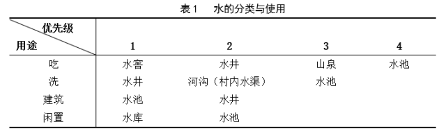 水窖里的水经过自然沉降,水体清澈,是村民日常吃水的首选。山泉虽是活水,但一般都离村较远。由于存水量有限,人们舍不得用水窖里的水洗衣服,而是选择井水和河沟里的水。水井沿河沟分布,在井边洗完衣服可以直接将水泼到河沟里。在村民的观念里,“水流三尺清”,他们不会因上游泼脏水而感到困扰。水池的水换水、消毒频率低,主要用来预防大旱,一般仅将其作为建筑用水。水库取水不便且水质一般,几乎无人问津。但“大河有水小河满”,水库里的水渗漏到地下,经过砂石过滤,保证了村中水井常年不断。