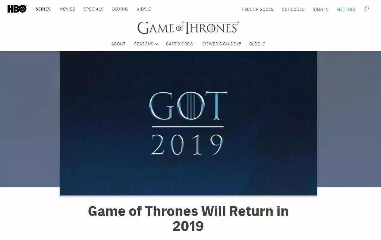另外,插播一则消息,本周五,HBO官宣——《权游》最终季将在2019年播放。